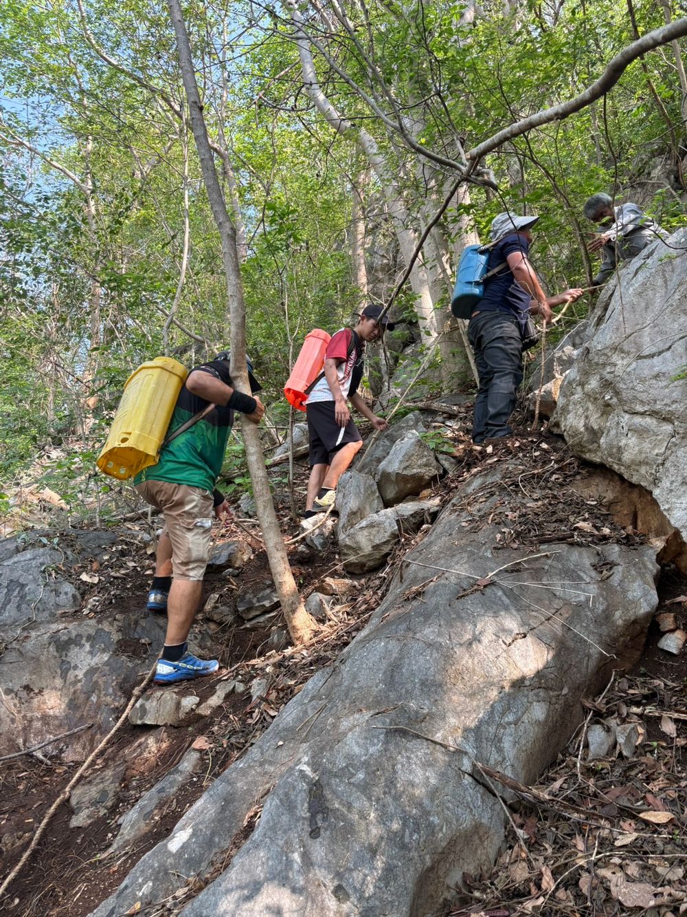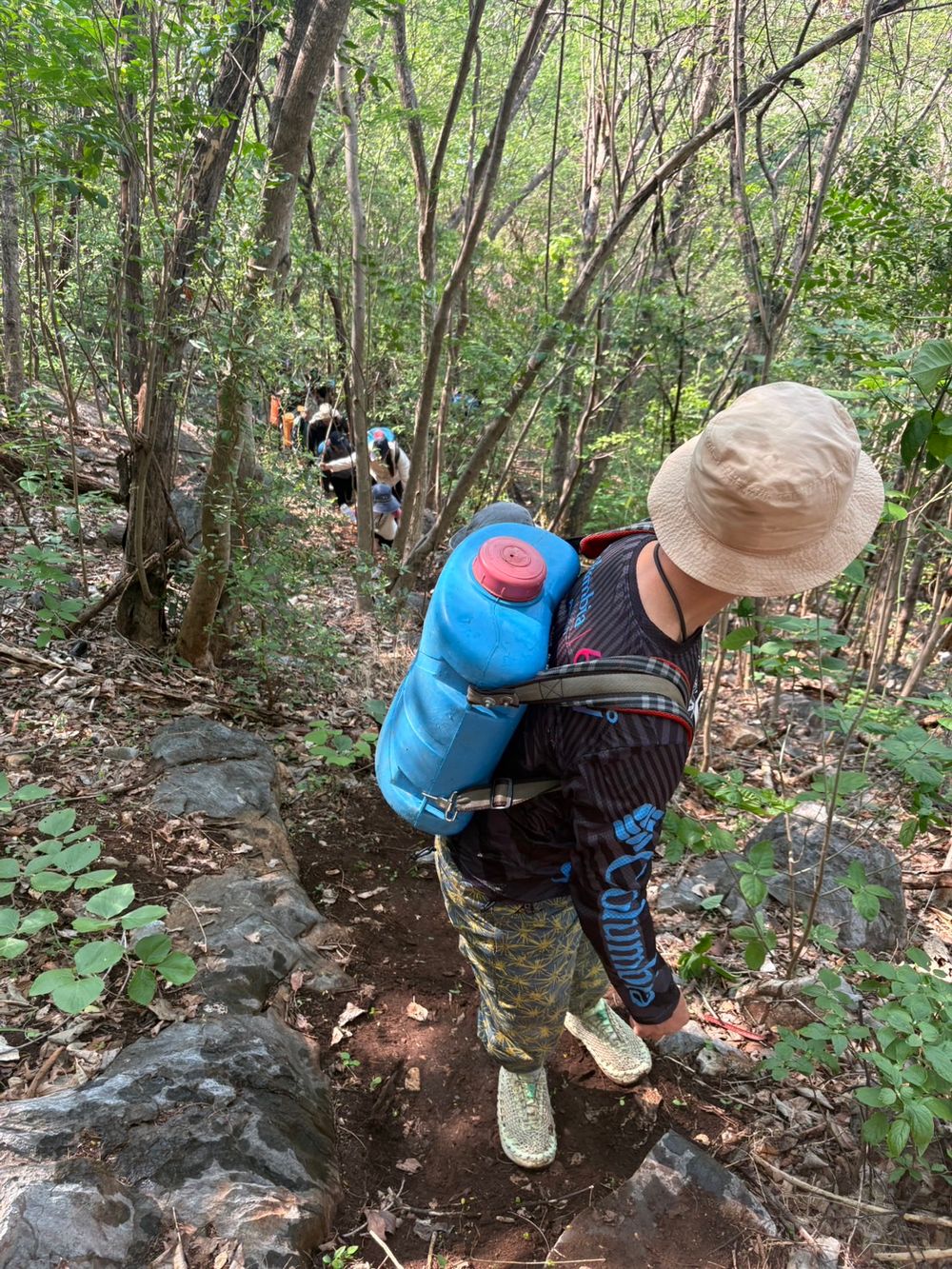 Carrying 18 liters of water up a mountain 492 meters above sea level over a distance of 350 meters—with roughly 100 meters being steep terrain—is no easy feat. However, everyone collaborated until they successfully filled the tanks at all 10 locations, with each point holding approximately 220 liters.