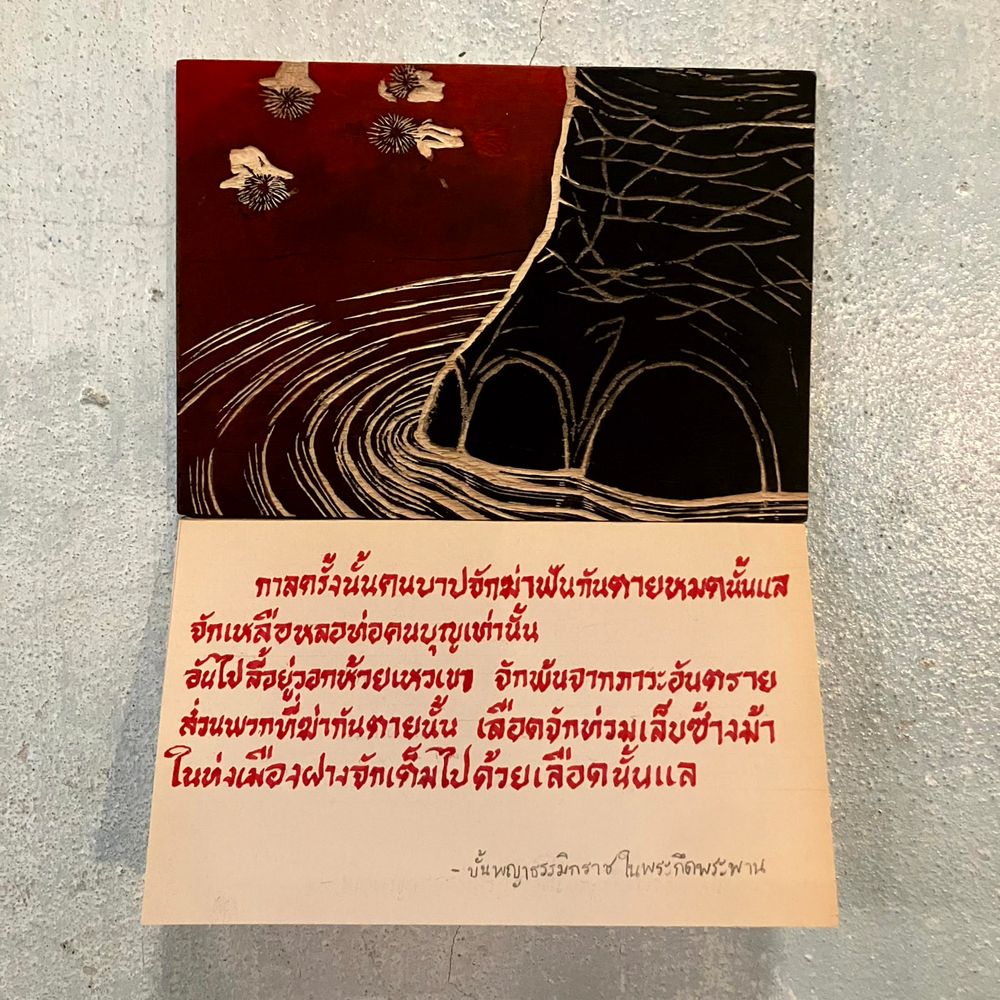 “Our work is both. The art displayed, both visual and live performance, differs from previous works on the suppression of rebellions. Here, each artist or collective explores the environments used by the Phi Bun (Holy Man) movement—their communication tools, glawn lam (traditional verse), and the music used for mobilization. It connects past events to the present, or even reflects conditions similar to those before the Battle of Non Pho—the cycle of repeated oppression—which can link to the local cultures of other regions.”