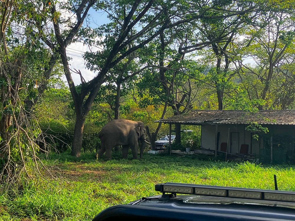 "Khrae" is another popular Khao Yai community elephant who is second to none in the Mu Si area. Although he is just a teenager—barely 15 or 16 years old—his extensive experience from roaming the community since he was a small calf has given him quite a bit of street-smarts. He is a notable rival who causes quite a headache for the officers and elephant push-back volunteers.