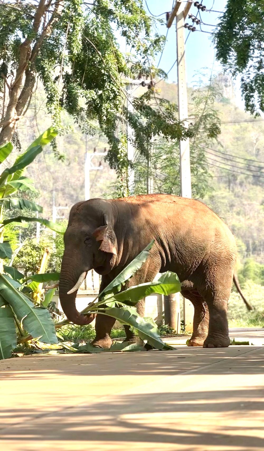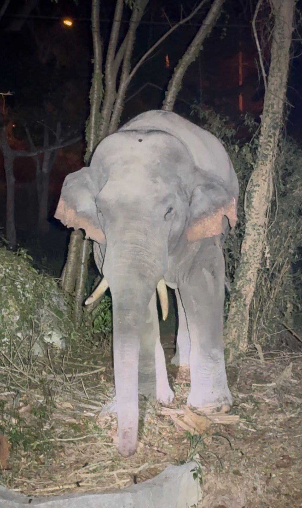 Another of Khrae's habits—which could be described as "losing his elephant ways"—is that he stays in the community almost all night. His daily routine involves rummaging through municipal trash cans. Whichever alley has a trash can, Khrae will be there. Importantly, he doesn't just stay for a short while; he stays all night long—or as the kids say, "until dawn".