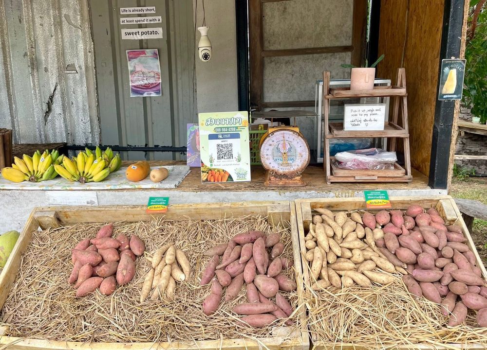 “We knew the district agricultural officer, and when we invited them, they invited the District Chief for us. His name was Preeda Sukchai. He’s now the Deputy Governor of Prachuap Khiri Khan. When the District Chief came, the press came too, which made our garden more widely known. That was around 2023. We didn't even have a Facebook page yet. At the time, no one was doing what we were—allowing people to dig their own sweet potatoes in the garden and selling produce at the front.”