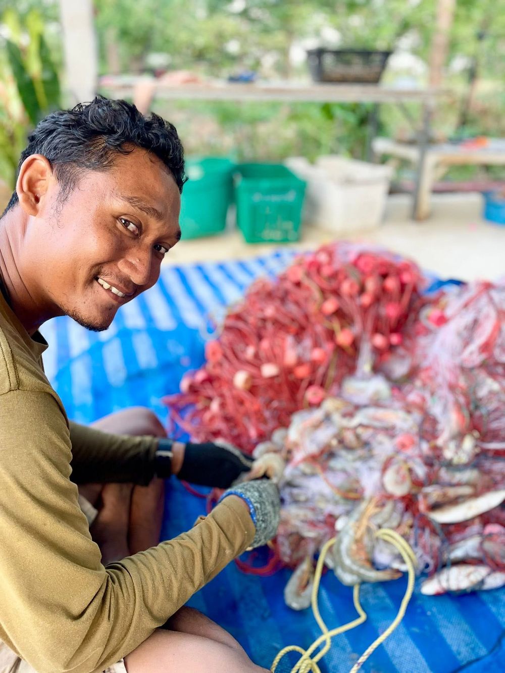 But fishing has costs too. Nets for catching different types of aquatic animals vary. Previously, we only caught squid, but to catch shrimp, we needed more equipment. And to buy a net for pomfret, it’s another set. One bundle of pomfret net costs 10,000 baht. Since everything has a cost, you have to decide carefully.