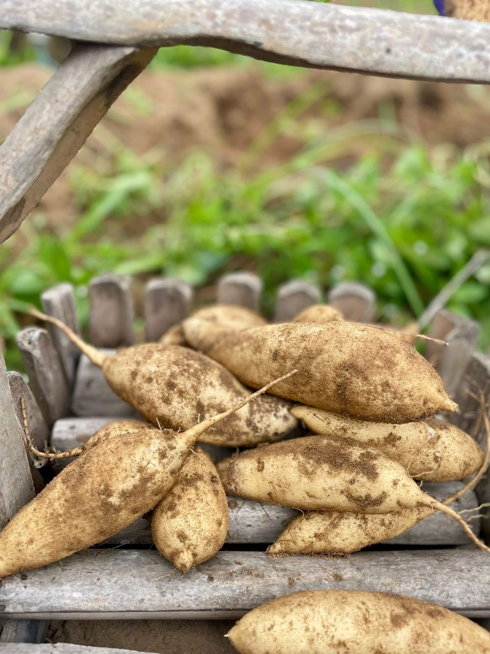 That sweet potato was unexpectedly sweet, similar to Japanese varieties. Upon further research, they found this white-skinned variety was called Kuri Kogane. The longer it’s left after harvest, the sweeter it gets, whereas Thai varieties don't get sweeter and become stringy over time.