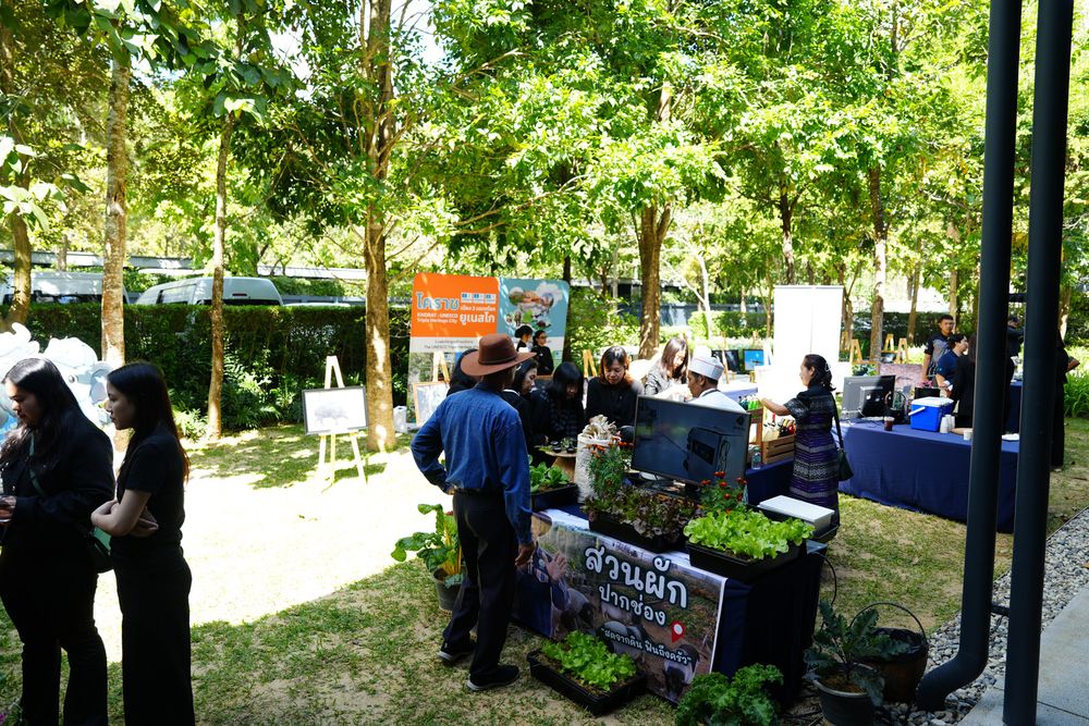 Then, the Ban Tha Chang Community Enterprise presented products and tourist attractions, especially the crystal clear “Nam Phut” (natural spring), a popular tourist destination in Khao Yai. Capped off by Farm Me by Green Innovate, presenting innovations in vegetable growing for the food industry, demonstrating the potential of a national-level vegetable farm. They brought various types of tomatoes and bell peppers for tasting, including “Microgreens,” which besides being delicious and rich in nutritional properties, also help reduce global warming because they take only 7 days to grow, significantly reducing carbon emissions. Importantly, Farm Me focuses on working with local restaurants to reduce transportation as well.