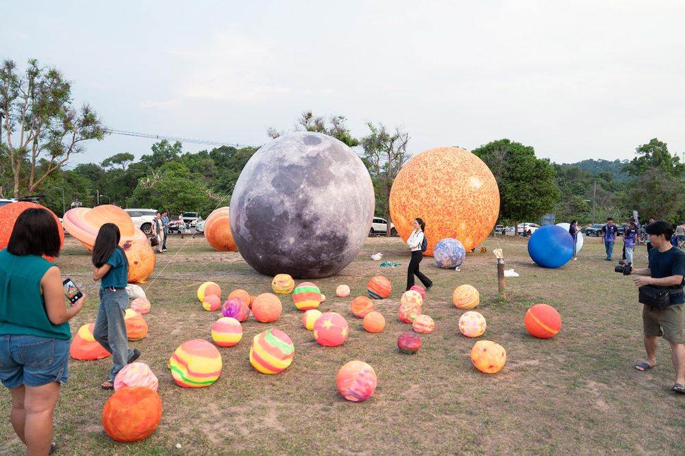 The event featured various engaging activities from partner networks, including light painting, stargazing via the Thai-developed “NAPA” app, mobile astrophotography, and DIY glowing constellation boxes. Attendees could also observe deep-sky objects through a caravan of over 50 telescopes. Additionally, students from Chulalongkorn University demonstrated simple and effective waste sorting processes and measured the carbon footprint—the amount of greenhouse gases generated by the event—as a key indicator of low-carbon tourism quality.