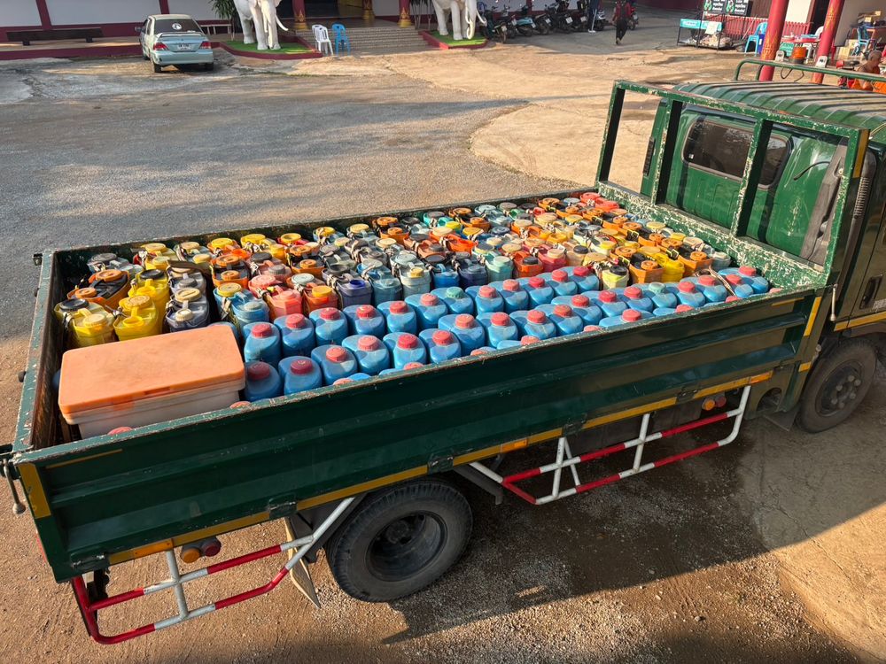 เพราะการขนน้ำจำนวน 18 ลิตร เดินขึ้นเขาที่มีความสูงจากระดับน้ำทะเล 492 เมตร เป็นระยะทาง 350 เมตร คิดเฉพาะทางชันประมาณ 100 เมตรนั้นไม่ใช่เรื่องง่ายนัก แต่ทุกคนก็ร่วมมือร่วมใจกันจนสำเร็จลุล่วง เติมน้ำเต็มถังครบทั้ง 10 จุด จุดละราว 220 ลิตร