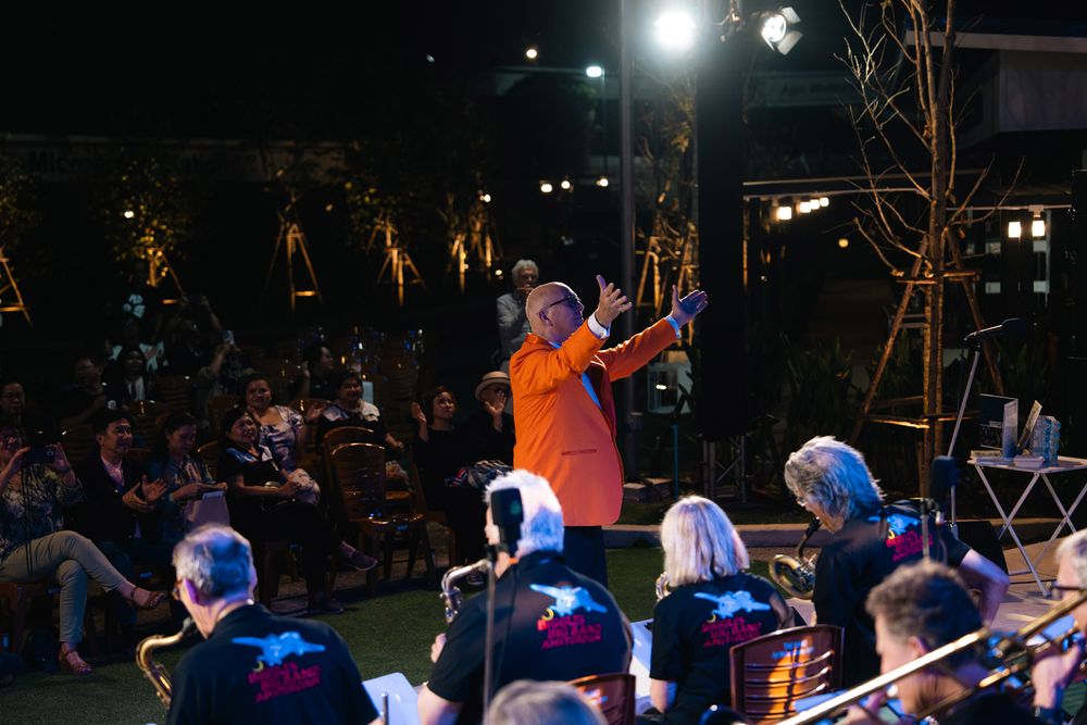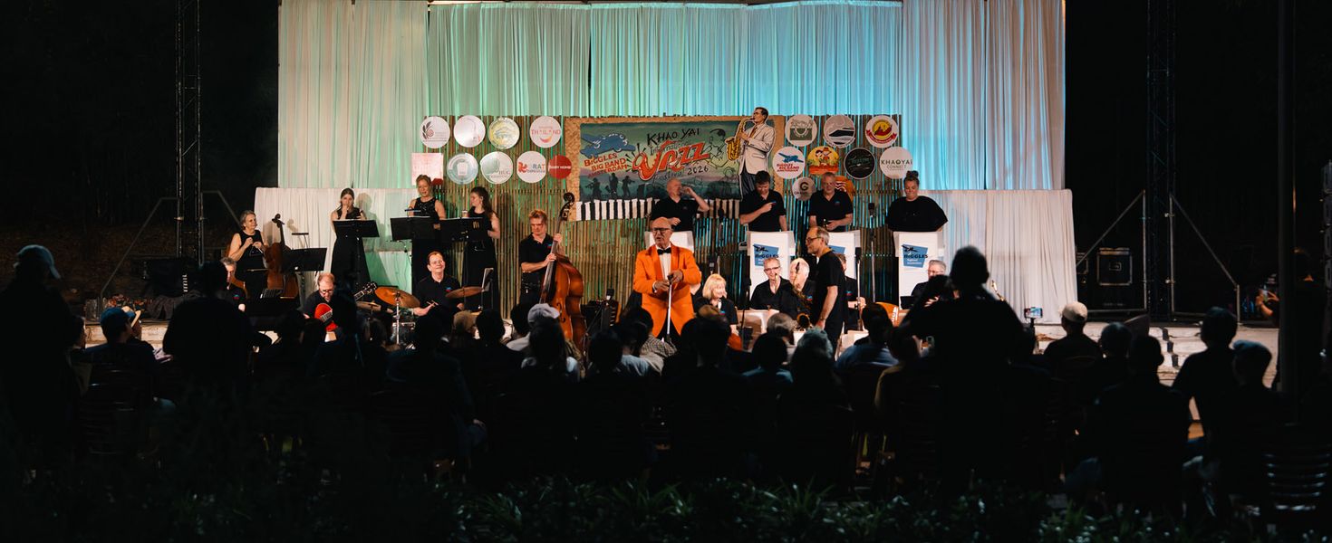 สิ้นสุดคำกล่าว เสียงเครื่องดนตรีบรรเลงเพลงสวิงแจ๊สก็กระหึ่มขึ้นมาท่ามกลางบรรยากาศธรรมชาติเขาใหญ่ที่กำลังเย็นสบาย สร้างความสนุกสนานครื้นเครงจนบางคนอดใจไม่ไหวลุกขึ้นมาเต้นไปพร้อมกับเสียงเพลงอย่างเพลิดเพลิน