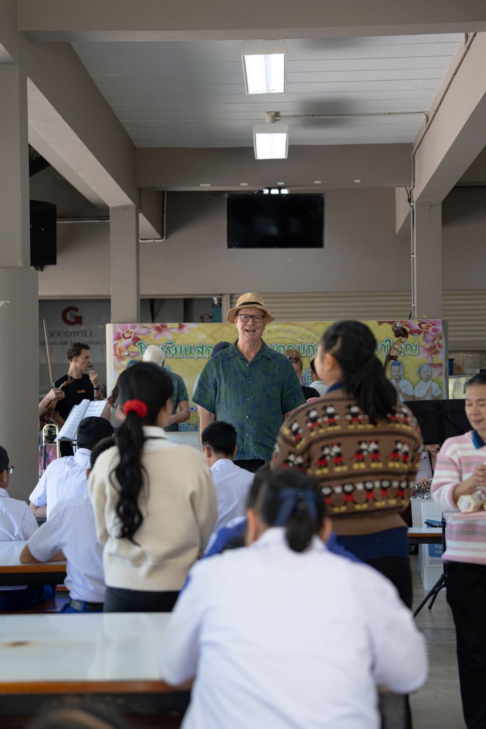 “สวัสดีท่านสุภาพสตรี ท่านสุภาพบุรุษทั้งหลาย ขอต้อนรับเข้าสู่การแสดงดนตรีของเราครับ ครั้งนี้วงบิ๊กแบนด์ของเราจะเล่นเพลงแจ๊สสวิงแบบดั้งเดิม ในนามของนักดนตรีทุกคนในวง ผมหวังว่าคุณจะชอบ ขอให้สนุกครับ ขอบคุณหลายๆเด้อครับ” คำกล่าวเปิดเป็นภาษาไทยที่ชัดถ้อยชัดคำจากคุณ Adrie Braat เรียกเสียงปรบมือชอบอกชอบใจจากผู้ชมในค่ำคืนนั้นได้อย่างดี