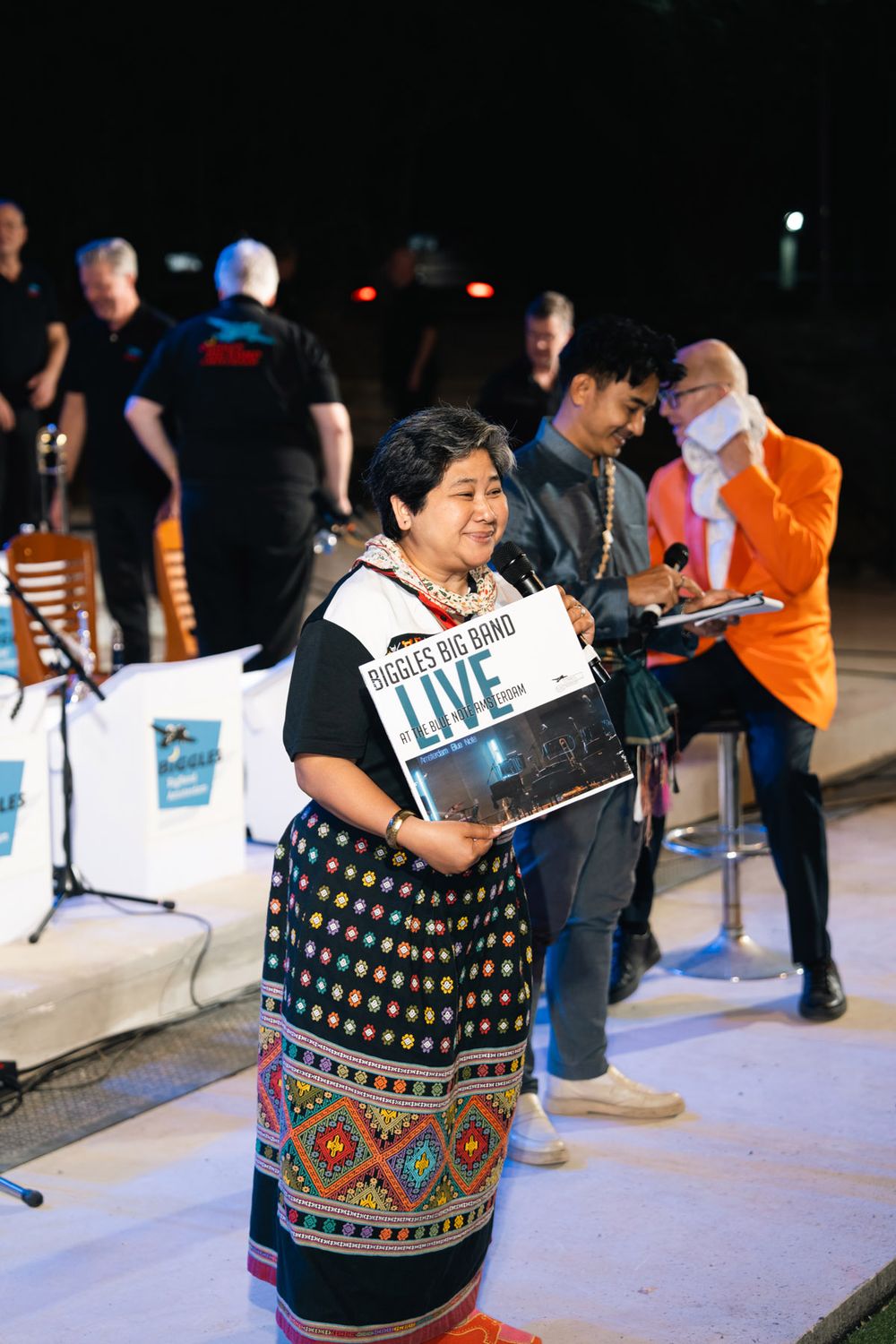 จบจากวงเปิดพักเบรกสักครู่ สมาชิกวง The Biggles Big Band ก็เริ่มทยอยขึ้นเวที โดย Adrie Braat วาทยกรของวงเดินขึ้นเวทีมาเป็นคนสุดท้าย ในชุดสูทสีส้มโดดเด่น เหมือนทุกครั้งที่เขาขึ้นแสดง