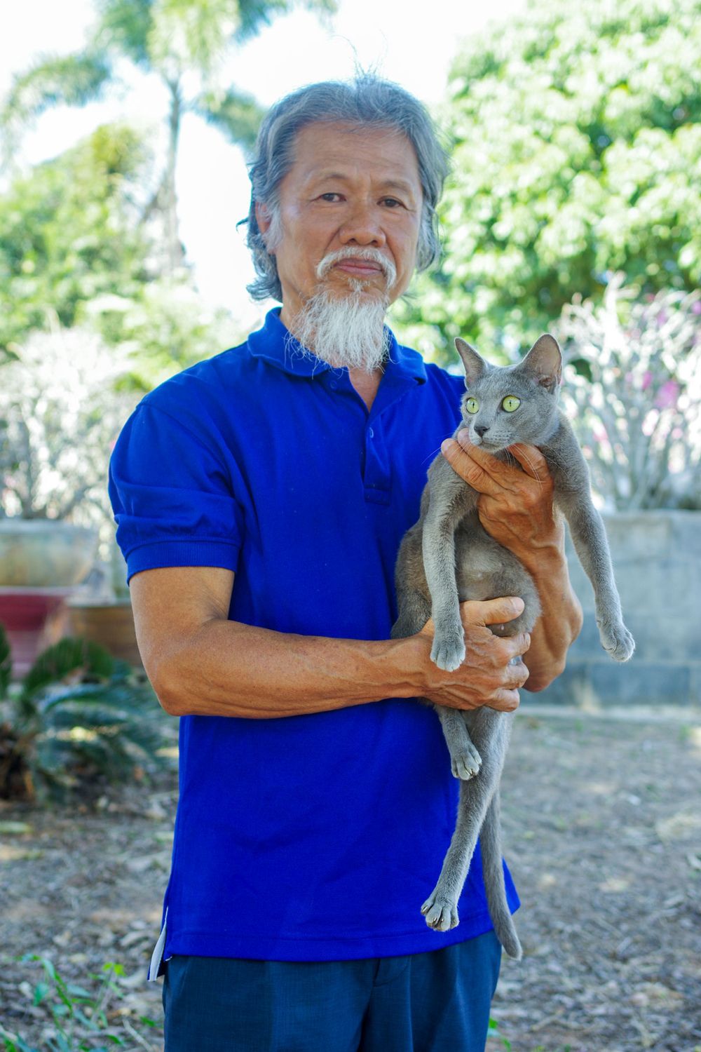 “เห็นแล้วเรารู้สึกว่าสวยดี มันคลาสสิค มีแต่สีเทาไม่มีสีอื่นมาปน เราก็หลงใหลเลย อยากเลี้ยงขึ้นมา ทั้งที่ไม่เคยชอบแมวมาก่อน ตอนช่วงปี 2542 เลยขอแบ่งปันจากคุณชูชัยเอามาเลี้ยง แล้วก็ไปขอแบ่งจากของคนที่เลี้ยงท่านอื่นๆ อีก เพื่อมาพัฒนาสายพันธุ์ จากนั้นก็เลี้ยงเรื่อยมาจากสิบเป็นยี่สิบเป็นสามสิบ”