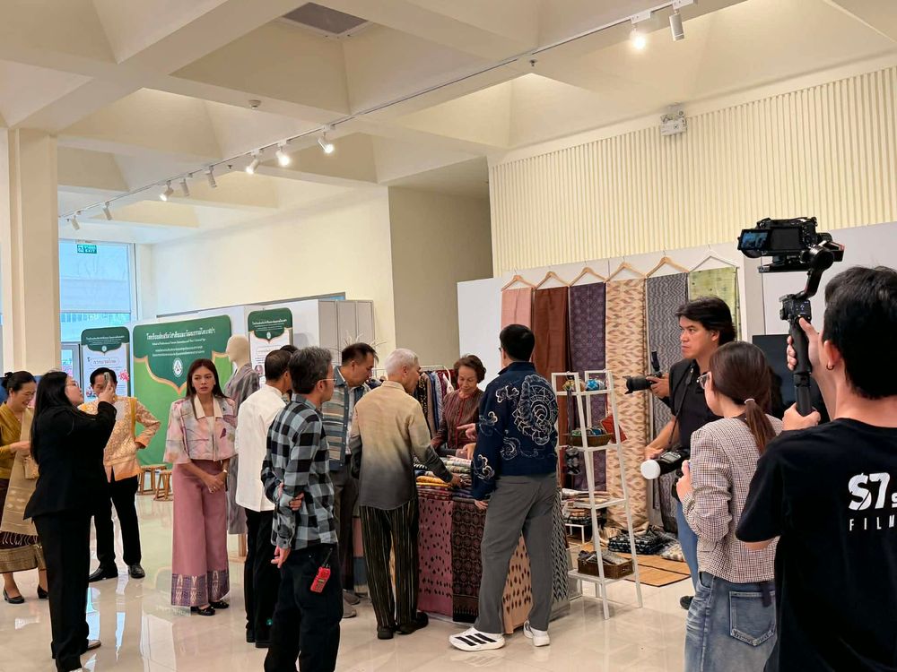 ในพื้นที่จัดงานนิทรรศการ เราพบการอยู่ร่วมกันอย่างน่าสนใจระหว่าง งานศิลปะ บูธนวดแผนไทย ผ้าทอ และของที่ระลึก