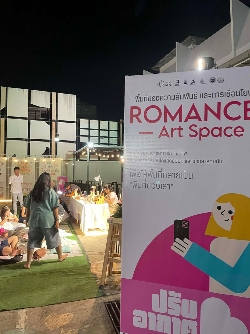 ป้าย Romance Art Space ประกาศชัดเจนว่าพื้นที่นี้เกี่ยวกับความสัมพันธ์และความรู้สึก เมื่อพิจารณาภาพรวมความโรแมนติกนี้ไม่ได้เกิดจากพื้นที่เป็นเพียงแค่การติดตั้ง