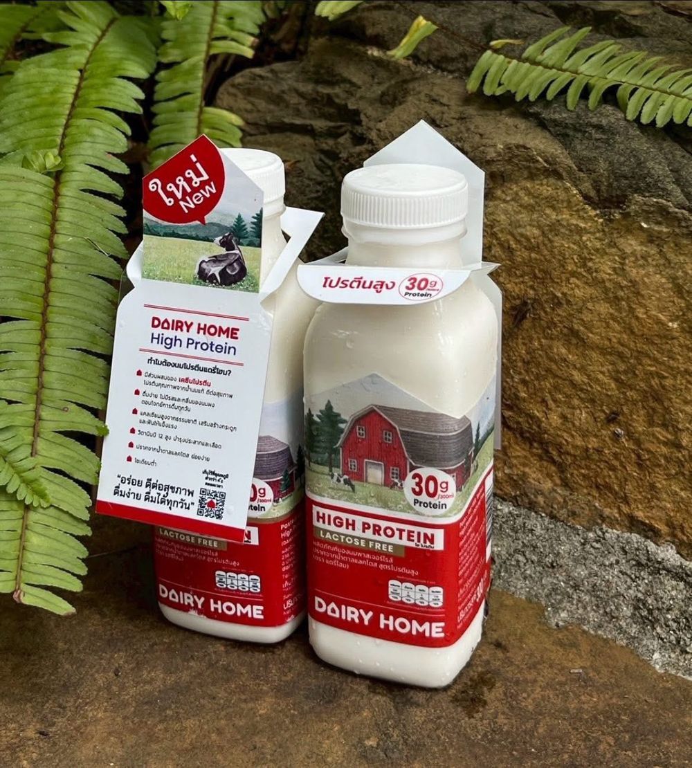 คุณพฤฒิยกตัวอย่างนมออแกนิกโปรตีนสูง 30 กรัม ของแดรี่โฮม แม้จะเป็นนมออแกนิกโปรตีนสูงอยู่แล้ว แต่นมสดจากวัวไม่สามารถมีโปรตีนสูงขนาดนั้น ถ้าจะให้ได้ถึง 30 กรัม ก็ต้องกินนมเป็นลิตร ใครกินขนาดนั้นก็คงจะจุก ดังนั้นเมื่อเราต้องการโปรตีนสูงก็ต้องเติมเนื้อนมเข้าไป แต่เราเลือกเติมเพียวเคซีน ซึ่งเป็นโปรตีนที่สกัดจากนมที่ไม่มีแลคโตสแล้ว เพื่อให้โปรตีนถึง 30 กรัม แต่เบสคือนมแท้ จึงทำให้นมแดรี่โฮมมีรสชาติที่ยังอร่อยเหมือนนมที่เรากินปกติ และคนย่อยแลคโตสไม่ได้ก็ดื่มได้ด้วย
