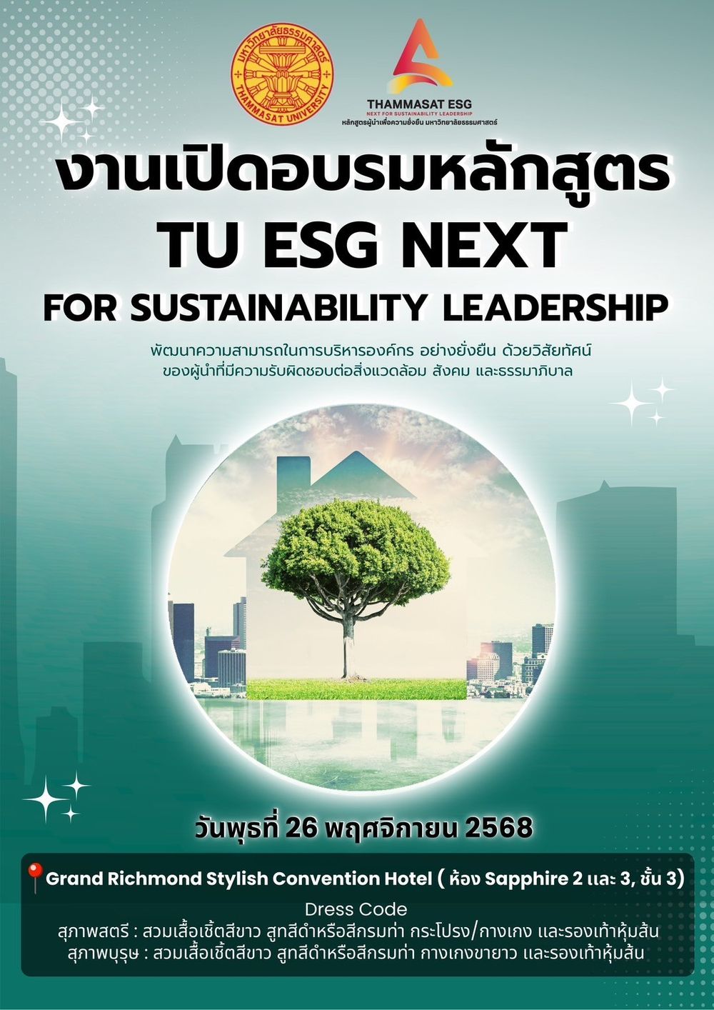 ณ เวลานี้ ESG (Environment (สิ่งแวดล้อม) Social (สังคม) Governance (ธรรมาภิบาล) กรอบแนวคิดที่ใช้ประเมินความยั่งยืนและความรับผิดชอบขององค์กรทั้งด้านสิ่งแวดล้อม การดูแลผู้คน และการกำกับดูแลที่โปร่งใส) ไม่ใช่เพียงคำศัพท์ใหม่ในแวดวงธุรกิจอีกต่อไป และมีความสำคัญมากขึ้นเรื่อยๆ กลายเป็นโครงสร้างความคิดที่นิยามอนาคตขององค์กรทั่วโลก มหาวิทยาลัยธรรมศาสตร์ในฐานะมหาวิทยาลัยชั้นนำของประเทศไทยจึงส่งสัญญาณที่ชัดเจนว่า ถึงเวลาแล้วที่ประเทศไทยต้องมี “ผู้นำด้านความยั่งยืน” แบบใหม่ ที่ไม่เพียงรู้ทฤษฎี แต่ทำเป็นจริง และทำร่วมกับผู้อื่นได้