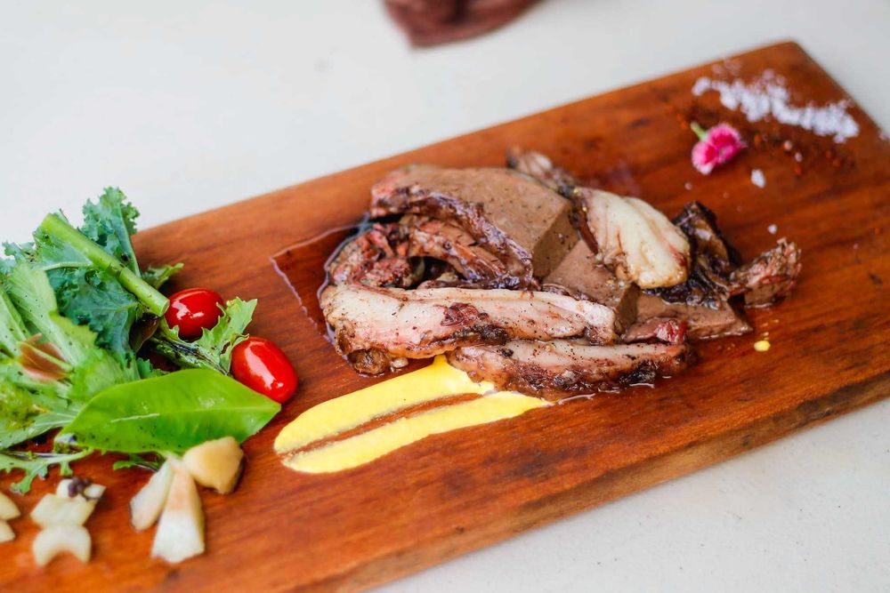 เมนูเด่นคงจะเป็นอย่างอื่นไปไม่ได้ นอกจากหมูและเนื้อรมควันไม้ลำไย ที่เสิร์ฟพร้อมซอสแจ่วมะแขว่น หรืออกเป็ดรมควันซอสน้ำตาลโตนดรีดักชั่น ใครเป็นสายมังสะวิรัติก็มีเต้าหู้คั่วพริกเกลือให้เลือกรับประทาน หรือหากอยากอิ่มในจานเดียว ข้าวหน้าปลานิลมานิตย์ก็ตอบโจทย์ได้ดี