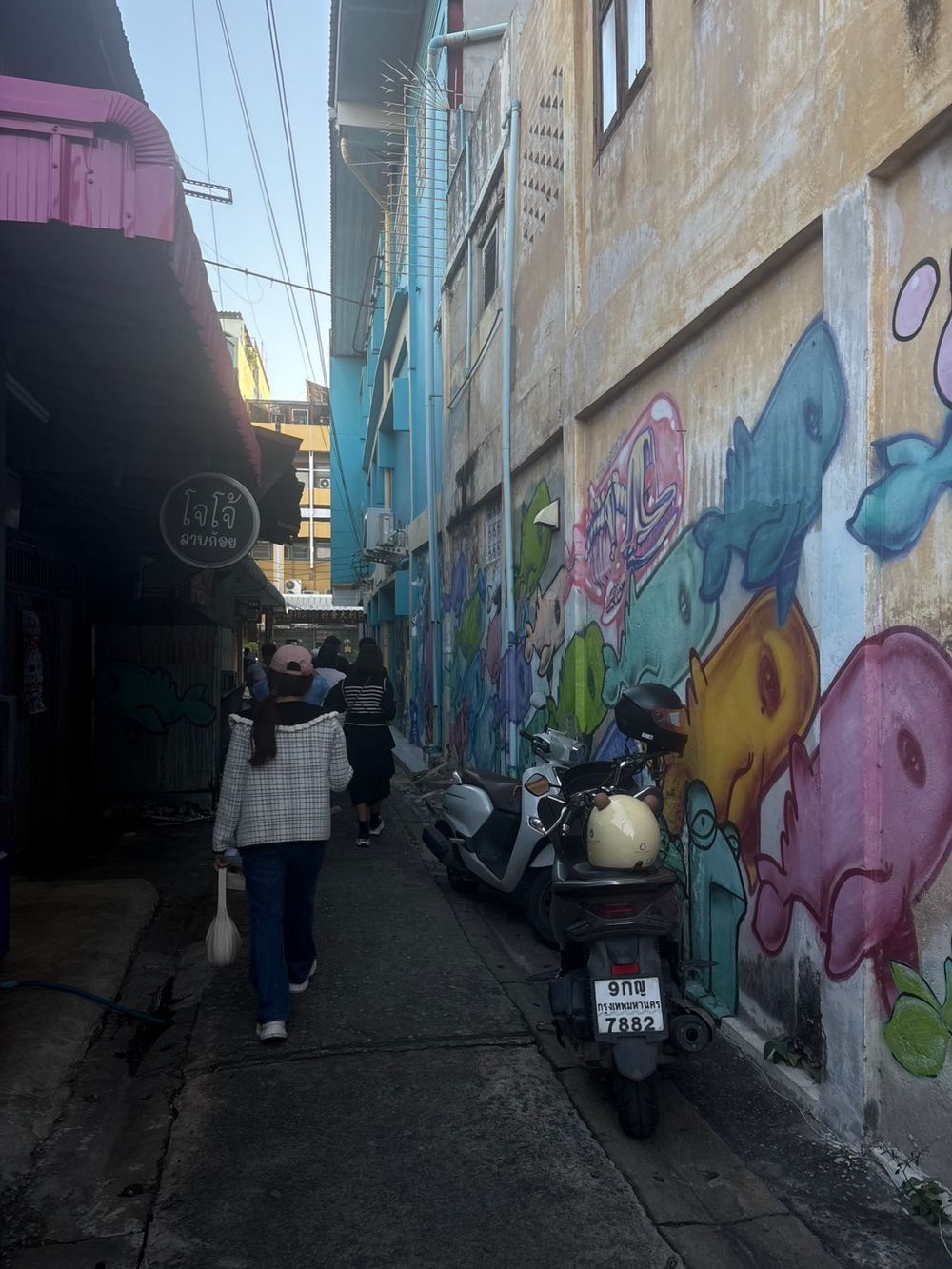 จากประตูชุมพลเข้ามาไม่ไกลนัก อ.พิทักษ์ชัย ชวนผู้ร่วมทริปหยุดที่ตรอกแห่งหนึ่ง ชื่อว่าตรอกสำราญจิตต์ เป็นตรอกเล็กๆ ที่ด้านข้างเต็มไปด้วยผลงานสตรีทอาร์ตทั่วทั้งกำแพง ขยับเข้าไปอีกหน่อยจะมีคาเฟ่เล็กๆ น่ารัก และร้านลาบสุดฮิป ให้บรรยากาศส่วนผสมที่ลงตัวของเมืองสมัยใหม่ที่แทบนึกไม่ออกว่าครั้งหนึ่งตรอกแห่งนี้เคยเป็นที่ตั้งของไนต์คลับ ผับ และบาร์ รวมถึงซ่องโสเภณีไว้คอยบริการทหารจีไอที่เข้ามาในเมืองโคราชช่วงสงครามเวียดนาม ราวปี 2510-2518